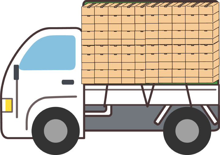 お預かりしたお荷物を、ひとつひとつ丁寧に扱いながら、専用の便でお届けします。